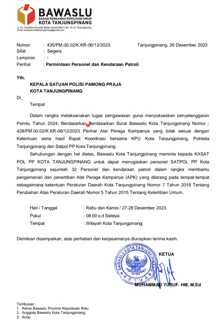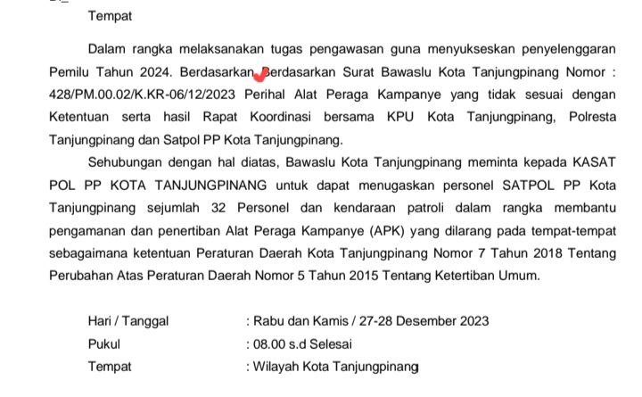 Ketua Bawaslu Tanjungpinang M Yusuf dan Hendri S dkk sudah surati ke Satpol, terus di razia, terus di bongkar