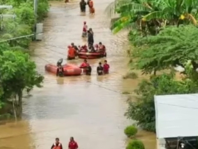 Ketinggian bervariasi ada 1-3 meter, longsor dll, tetap waspada, TNI, POLRI, SATPOL, DISHUB, BPBD, SAR dll saling gotong royong membantu evaluasi dan saling bahu membahu.