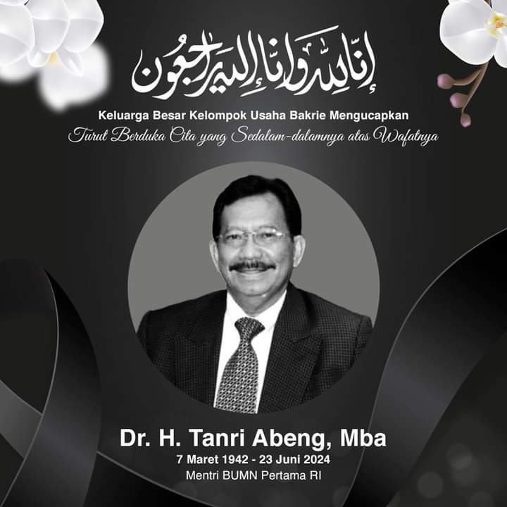 Tanri Abeng Wafat 23/6/2024 jam 02.39 di semayamkan di Jl Simpruk Golf XIII Jakarta Selatan