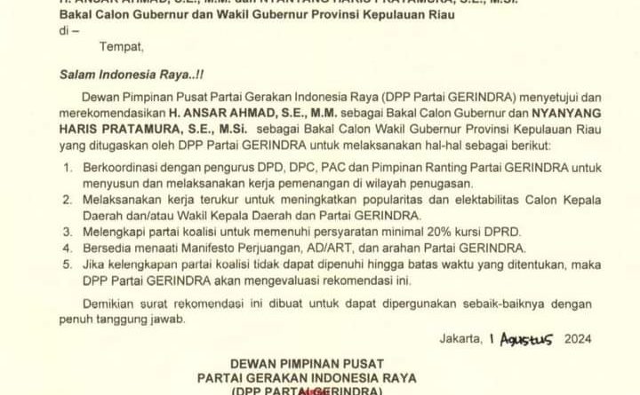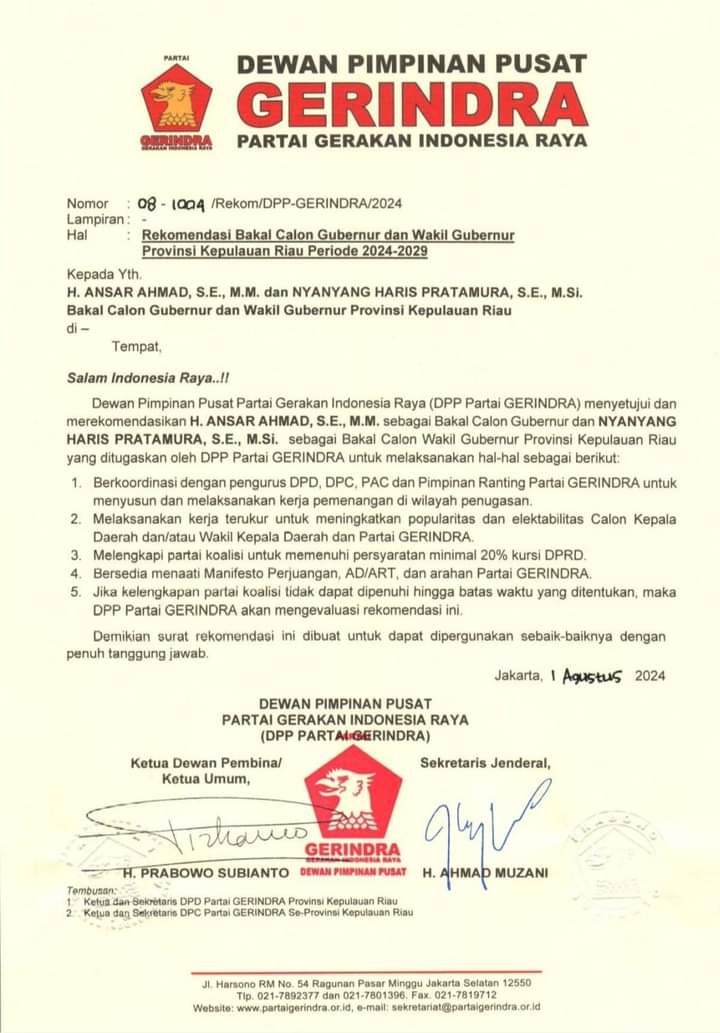 Artinya Ansar sudah di pastikan ingin maju kembali sebagai Cagub Kepri, pendaftaran ke KPU Kepri bundaran km 8 Tanjungpinang bulan ini wajib sudah daftar lewat Gerindra