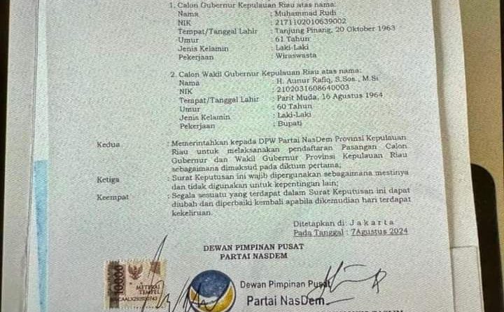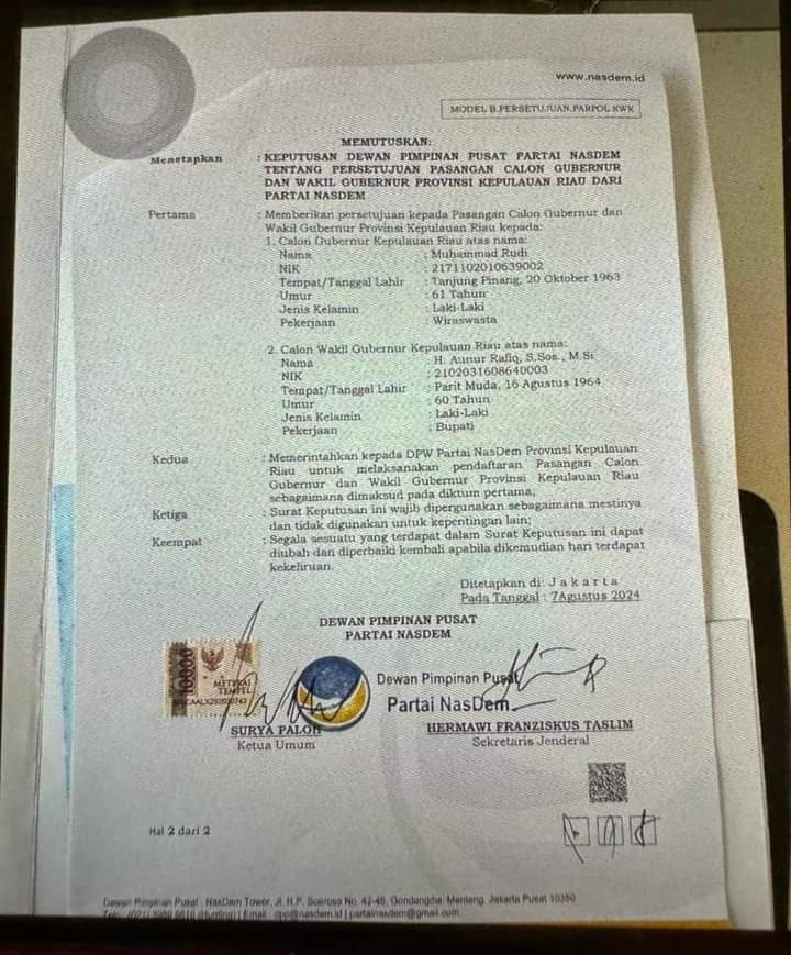 Insya Allah terpilih jadi Gubernur Kepri tanggal 27 Nopember 2024 , M Rudi sudah dua periode jadi Walikota Batam, sementara AUNUR RAFIQ sudah dua periode jadi Bupati Karimun