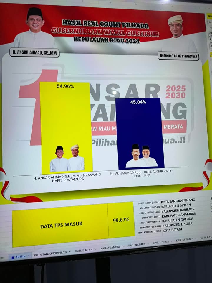 Perolehan suara sementara hasil di masing masing TPS dan saksi dari parpol adapun yang menang : Ansar Ahmad – Nyanyang untuk Gubernur, untuk Walikota Batam Amsakar – Li Claudia, untuk Walikota Tanjungpinang Lis Darmansyah – Raja Ariza