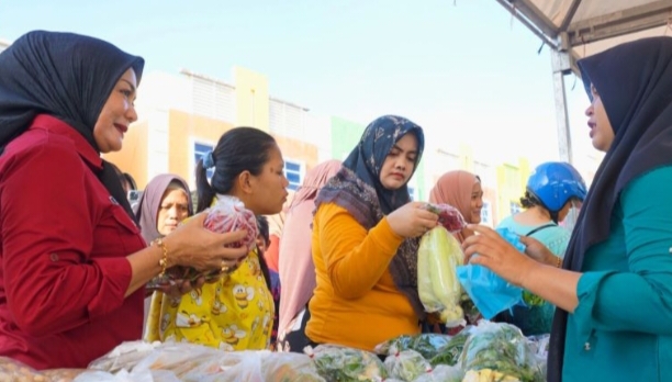 Walikota Tanjungpinang Andri Rizal Siregar SE MM, Sekda Zulhidayat, Kadis Perindag Riany dan PKK bersama pihak lainnya gelar pasar murah di Pinang Kencana, membantu kesulitan rakyat