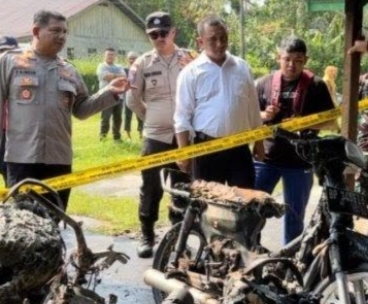 Kapolsek Dabo dan Kapolres lagi selidiki sebab terjadinya kebakaran motor empat unit, tetap waspada, kondisi cuaca lagi tak menentu, kadang panas, hujan, gelombang tinggi, kadang angin kencang, semoga tetap waspada.