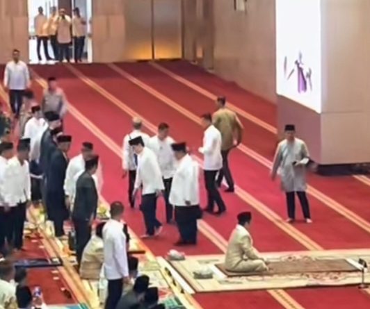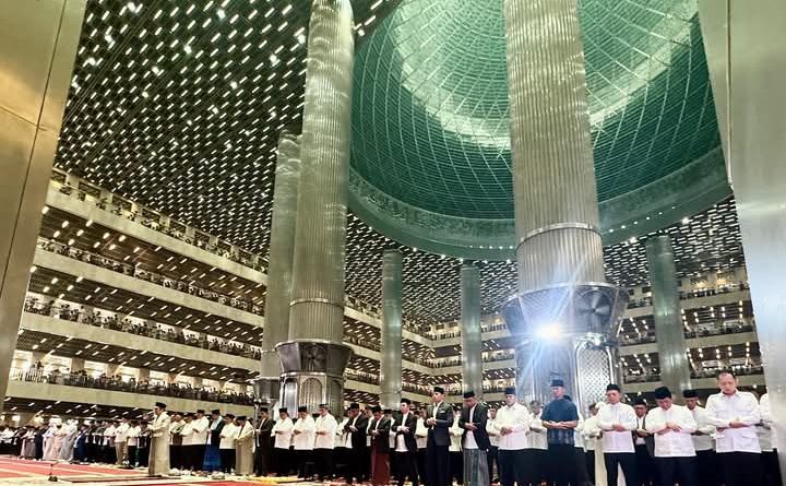 Presiden Prabowo Subianto dan Menko Agus Hari Murti Yudhoyono di Masjid Istiqlal Jakarta sholat Idul Adha 1446 H Ada Panglima